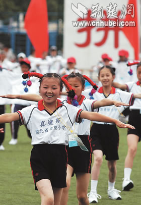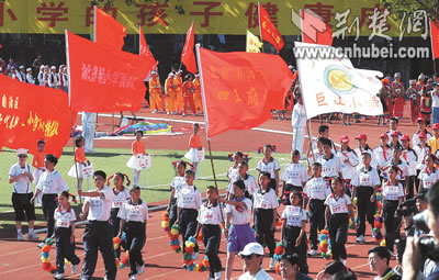 全國首屆希望小學(xué)運(yùn)動會昨日在北京開幕,來自大別山下英山縣石頭嘴鎮(zhèn)希望小學(xué)的20名學(xué)生代表,向首都觀眾展現(xiàn)了湖北少年勤奮好學(xué),勇于拼搏的形象。據(jù)了解,中國青少年發(fā)展基金會發(fā)起實(shí)施希望工程15年來,已資助250多萬名農(nóng)村貧困學(xué)子,援建希望小學(xué)萬余所。湖北日報(bào)記者 王威 攝