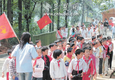 昨日,武漢市洪山區(qū)九峰鄉(xiāng)1700多名小學(xué)生興高采烈地來(lái)到武漢九峰鄉(xiāng)森林動(dòng)物園,參加別開(kāi)生面的慶“六一”活動(dòng)。孩子們?cè)凇叭恕?dòng)物·未來(lái)”百米長(zhǎng)卷上簽名,以表示愛(ài)綠色家園,創(chuàng)美好明天的決心。這是孩子們游園的情景。