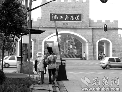 和南區(qū)的氣派牌坊廠門相比,漢陽(yáng)鋼廠北區(qū)的大門異常簡(jiǎn)陋。