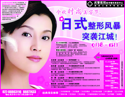 今日起,對光子嫩膚、割雙眼皮、隆鼻、除皺、豐胸、脫毛、文唇、美齒等時尚美容感興趣的讀者,可撥打電話027-86772101,報名參加“美麗之旅”,本集團將組織專家篩選之后,為入圍讀者量身定做各種免費美容體驗項目;同時,想詳細了解各種美容過程的讀者,也可報名參加,現(xiàn)場觀摩。報名活動將持續(xù)到本周五。
