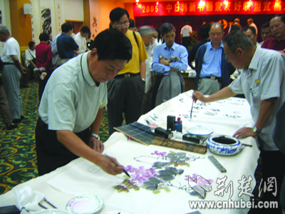昨日,來(lái)自中、日、新、韓四國(guó)共26名書畫大家在游覽三峽后,紛紛揮毫潑墨,并與宜昌本土?xí)嫾疫M(jìn)行了交流。據(jù)了解,此次四國(guó)書畫家友好聯(lián)盟大型筆會(huì)活動(dòng),是由宜昌市政協(xié)、宜昌點(diǎn)軍區(qū)政府和宜昌環(huán)中房地產(chǎn)開(kāi)發(fā)有限公司、宜昌環(huán)中旅游開(kāi)發(fā)有限公司共同舉辦的。荊楚網(wǎng)楚天都市報(bào)記者梅曉蕓攝