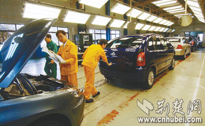 繁忙的神龍汽車生產(chǎn)線。日?qǐng)?bào)記者楊平攝