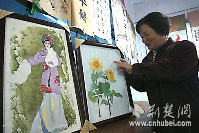 舉一反三,布頭、報(bào)紙、糖紙、甚至不能穿的衣服后來都成了她做貼畫的材料。
