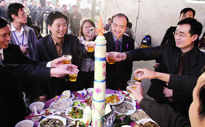 襄樊市委領(lǐng)導(dǎo)靳永龍、馬黎,棗陽(yáng)市委書(shū)記常全華和聶新勝等人,來(lái)到精心制作的生日蛋糕前,切生日蛋糕。頓時(shí),歡樂(lè)的禮花四處綻放,鞭炮齊鳴。來(lái)自全國(guó)各地的百余名記者紛紛舉起手中的相機(jī),閃光燈閃個(gè)不停,爭(zhēng)相記錄下這難忘的一刻。