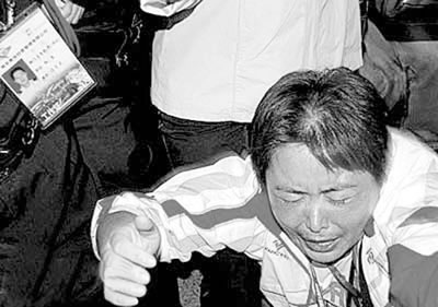 劉青的另一名教練張敏情緒激動(dòng),攔住了一名仲裁理論。記者越來越多,把倆人圍在中間。張敏不斷大聲喊叫:“我只要一個(gè)公平!”聲音逐漸嘶啞。仲裁向電梯走去,她硬扒住電梯。仲裁只能返回到競(jìng)賽控制中心,但中途又被張敏擋住。她甚至哭著跪倒在地,幾乎暈厥(如圖)。
