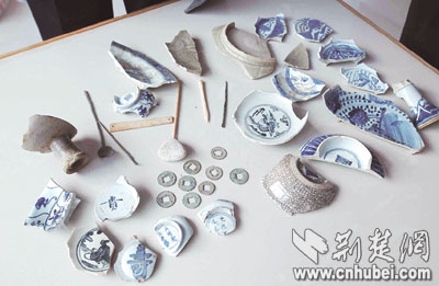 今年10月上旬開(kāi)始,考古人員對(duì)南漳一建筑工地進(jìn)行勘探發(fā)掘。一個(gè)月來(lái),勘探出明代遺址近3000平方米,從開(kāi)挖的9個(gè)探方中,已發(fā)掘出明代墻基、墻角和路面10多處,這些遺址都用大小石塊和石子有序排列,保存十分完好。在遺址中,考古人員還發(fā)掘出大量帶有花紋和文字的明代青花瓷片,以及銀簪、銅勺、骨質(zhì)發(fā)簪、古錢(qián)幣等明代生活用品。