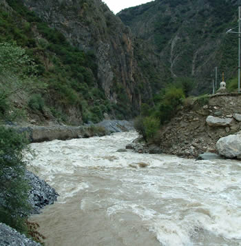 在整個(gè)川藏線上,河流是沿線的主要風(fēng)景。它們千姿百態(tài),或?qū)捇蛘,或湍急或平緩,或清澈見底或近似泥石流。每一條河流都有自己獨(dú)特的語(yǔ)言,在傾訴屬于自己的一段歷史。正是它們構(gòu)成了祖國(guó)無(wú)限風(fēng)光的畫卷。