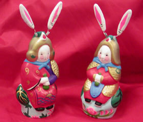 北京民俗專家王作楫先生認(rèn)為,兔兒爺更能代表北京城的形象。因?yàn)槊總城市都有自己的“城市性格”,而兔兒爺在人們心里一直都是北京城的保護(hù)神。兔兒爺一般出現(xiàn)在八月十五,有團(tuán)團(tuán)圓圓的意思,這也離奧運(yùn)會開始的時間相差不多,可以反映全世界運(yùn)動健兒的大團(tuán)圓。