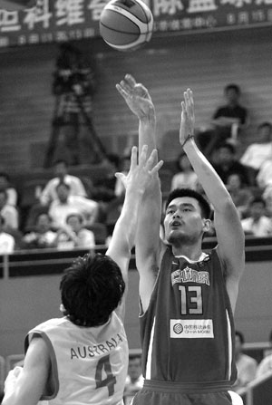 今晚,男籃的開局相當不錯,第一節(jié)只讓對手得了9分,自己拿到23分。局勢是在第三節(jié)惡化的,由于犯規(guī)過多,姚明這一節(jié)基本沒上場,結果男籃居然在5分半鐘內(nèi)一分不得,澳大利亞隊趁機打出16比3的高潮,將分差縮小到1分。第四節(jié),雙方展開拉鋸戰(zhàn),姚明和大郅輪番攻擊得手,帶領男籃始終壓制著對手,直到最后5秒的那次制勝一投。