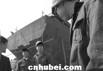 在武漢長江和漢江的江灘上,一些沒有造船資質證書的私人船東,招募了一批來自河南的農民工,建造了數(shù)十條貨輪。這些農民工收入低微,生活和工作條件都很艱苦。