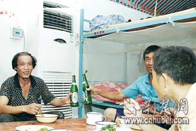 荊楚網(wǎng)(楚天都市報)昨日下午,新洲來漢的農(nóng)民工程師傅一收工,就直接鉆進了集體宿舍,圖個涼快———宿舍里剛剛安裝了一臺5匹的大空調(diào)。程師傅是一位木工,他所在的工地是位于漢口建一路的麗水康城。在那里,和他一起的工友有600多人,全都住在裝有空調(diào)的宿舍里。