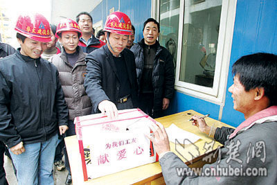 工友們悄悄謀劃開了。昨日上午,在施工現場,大家你100、我50地將錢投進捐款箱。一個多小時內,共捐款3460元。