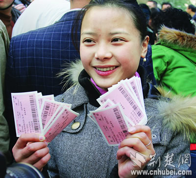 昨天上午9時(shí)許,在武漢某勞務(wù)公司工作的四川打工妹譚梅,攥著剛剛打印出來(lái)的一沓火車票,眉開眼笑:她和她的同事們,今年春節(jié)回家不用再擔(dān)心車票了!