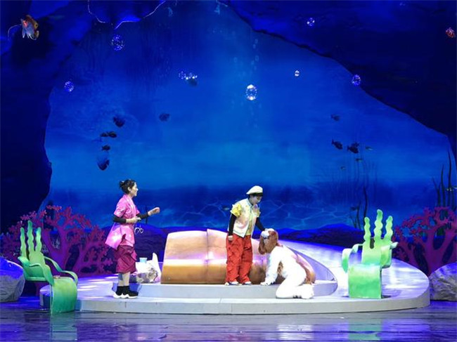 《浮出水面》講述了未來人類因一次地震而沉入海底生活,小男孩“歡歡”一家在未來世界認(rèn)識到環(huán)境污染的嚴(yán)重,在中華鱘“奔奔”的指引下浮出水面,最后重回陸地建設(shè)家園的故事,劇情將大量音樂舞蹈與科學(xué)知識結(jié)合,涵蓋垃圾分類、人體急救、阿基米德原理、火箭噴射等多種科學(xué)知識。整場演出亮點(diǎn)紛呈。