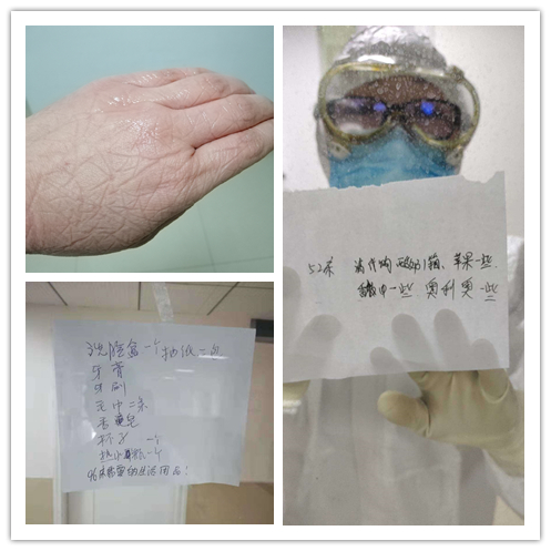 他們負(fù)責(zé)隔離患者的日常治療和護(hù)理,每天6個(gè)小時(shí)一次的輪班,穿上隔離服,她們就進(jìn)入緊張而有序的工作狀態(tài)。因?yàn)榇?、脫隔離服有著嚴(yán)格的操作流程和要求,所以不能夠喝水,穿著隔離服不方便上廁所。每天她們要做多種檢測(cè)和病情的記錄,身心處于高度戒備狀態(tài)的同時(shí),還必須時(shí)刻密切關(guān)注病患的心理變化,安撫病患的情緒。