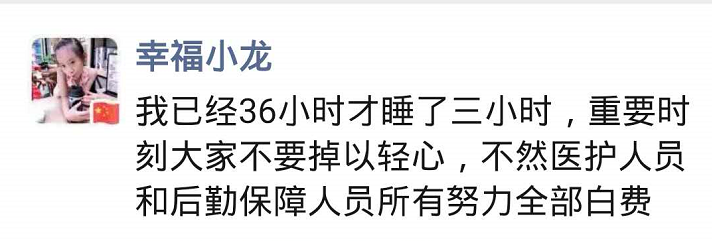年邁母親患病在家,只能托付十三歲的孩子陪伴照顧。自抽調(diào)隔離七區(qū)工作后,市人民醫(yī)院醫(yī)生陳衛(wèi)東已半個(gè)多月不曾回家。他在朋友圈里寫道:“我們不能回家,是為了讓更多的人能早日平安回家”。