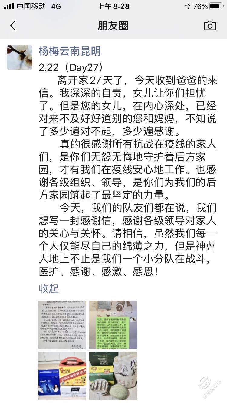 今天,我們的隊(duì)友們都在說(shuō),我們想寫(xiě)一封感謝信,感謝各級(jí)領(lǐng)導(dǎo)對(duì)家人的關(guān)心與關(guān)懷。請(qǐng)相信,雖然我們每一個(gè)人僅能盡自己的綿薄之力,但是神州大地上不止是我們一個(gè)醫(yī)護(hù)小分隊(duì)在戰(zhàn)斗。感謝、感激、感恩!