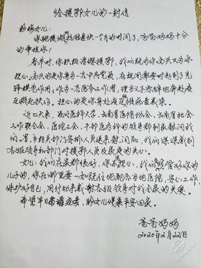 2月22日,離開(kāi)家27天的楊梅收到了父親的來(lái)信。