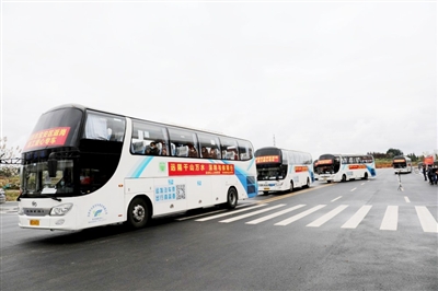 3月30日上午9時30分,在通山縣文體中心,12輛 “點對點、一站式”輸送返“粵”務(wù)工人員的愛心大巴專車,載著320名務(wù)工人員一路向南,前往深圳等地返崗復工,這是目前咸寧市人數(shù)最多的一次“點對點”輸送。