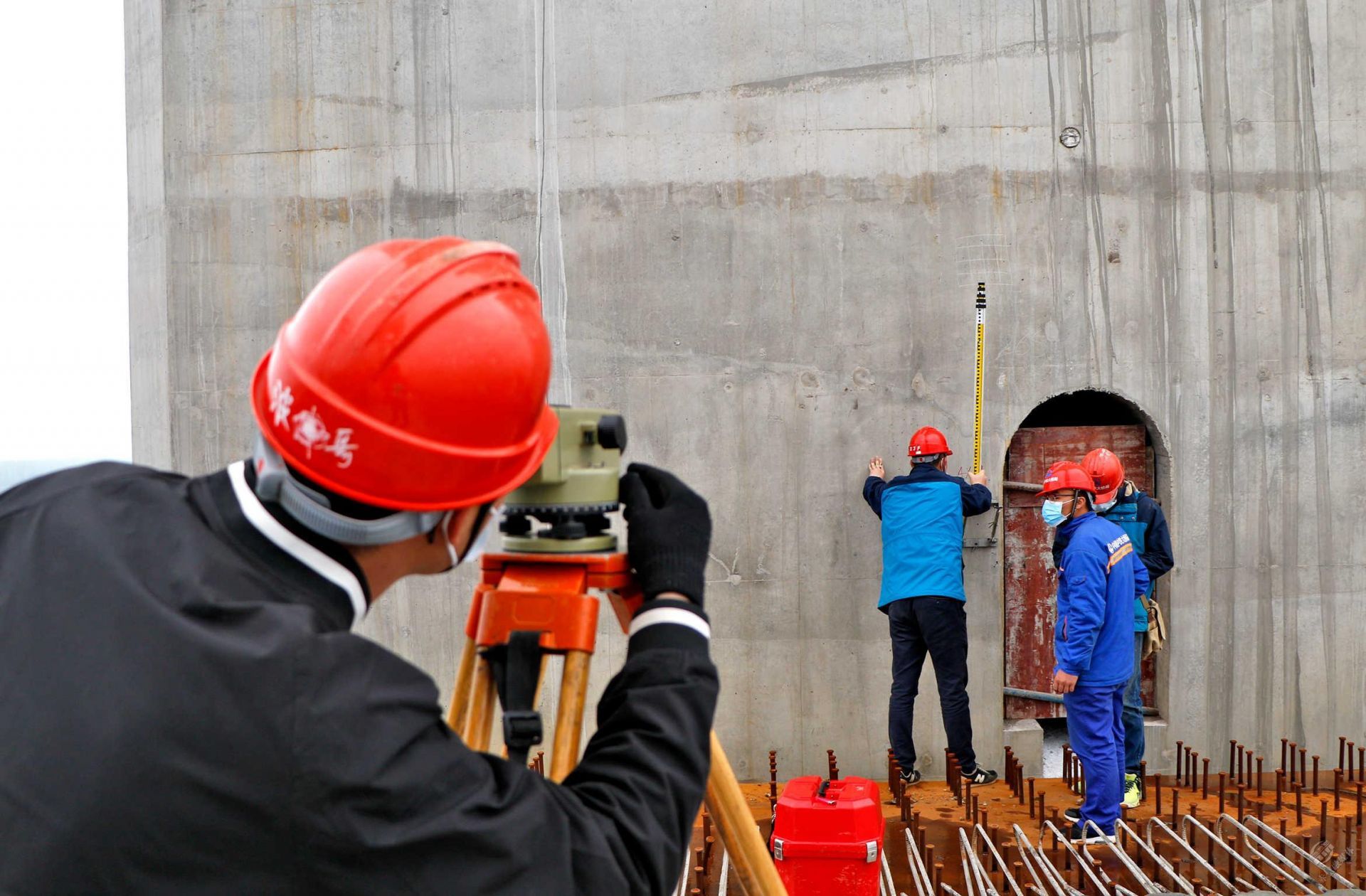 4月21日,赤壁長江公路大橋項目建設(shè)現(xiàn)場,技術(shù)人員為確保鋼梁準(zhǔn)確吊裝,正在進(jìn)行定位測量。