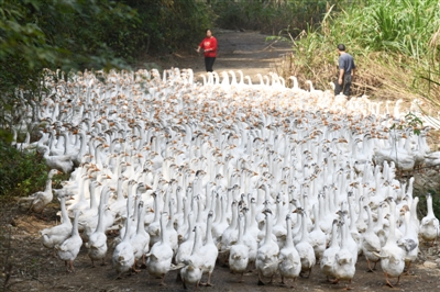 “3500多只鵝,每天光吃糧就得花1700多塊錢,5個(gè)多月來(lái),我們已吃去了16萬(wàn)多元,真的是‘被吃窮了’!”10月10日,崇陽(yáng)縣沙坪鎮(zhèn)廟鋪村4組的埂場(chǎng)山,山谷里回蕩著群鵝嬉戲的“嘎嘎”聲,55歲的養(yǎng)鵝人劉金漢和他的妻子張金書卻滿是愁言。