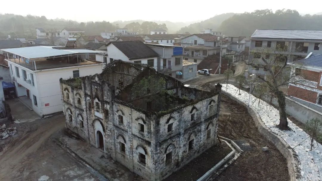不過,在王家畈村口依然存留著一所民國學堂建筑,雖已殘損,但墻體保存尚好,于寂然中屹立。