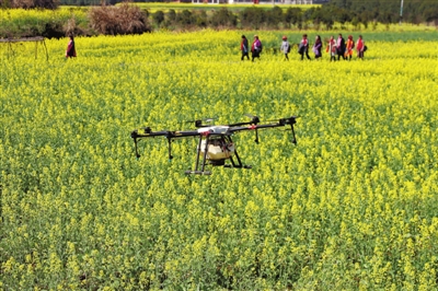 3月4日,在咸安區(qū)馬橋鎮(zhèn)建國畈油菜花海,一臺無人機(jī)盤旋在油菜花田上方,為油菜噴施環(huán)保復(fù)合肥。據(jù)咸安區(qū)農(nóng)業(yè)農(nóng)村局介紹,這是通過無人機(jī)來給油菜送“套餐”,無人機(jī)攜帶著精心調(diào)配的藥肥,能夠快速的對油菜大面積噴灑覆蓋,作業(yè)效率和效果顯著優(yōu)于人工噴施。