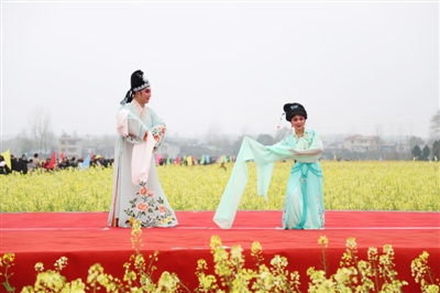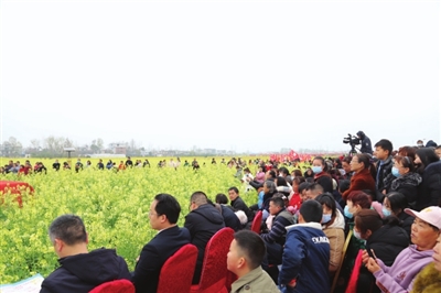 精彩的文藝演出、極具地方風(fēng)情的民俗表演和國(guó)家非物質(zhì)文化遺產(chǎn)提琴戲演唱,與花海交相輝映,為前來(lái)觀賞的人們帶來(lái)了絕美的視覺(jué)盛宴。開幕活動(dòng)結(jié)束后,開始游玩賞景,游客們或全家出動(dòng),或情侶相攜,或友人相伴,邊感嘆油菜花的美,邊呼朋引伴一起拍照留念,人花相映襯,美不勝收。除了賞花,大家還紛紛品嘗特色美食,購(gòu)買當(dāng)?shù)靥厣r(nóng)產(chǎn)品。