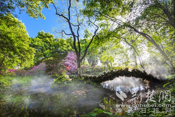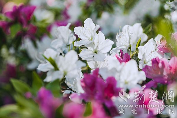 荊楚網(wǎng)(湖北日?qǐng)?bào)網(wǎng))訊(通訊員陳長(zhǎng)麗)最美人間四月天,“花中西施”杜鵑接力登場(chǎng)成為春花主力。在武漢植物園,5萬(wàn)株杜鵑恣意開放,園內(nèi)各處杜鵑簇?fù)碇︻^,織錦堆繡,漫山紅遍,美不勝收。園區(qū)重新修繕提升了杜鵑園霧噴景觀,云霧繚繞中,萬(wàn)千杜鵑燦若云霞若隱若現(xiàn),宛若人間仙境。