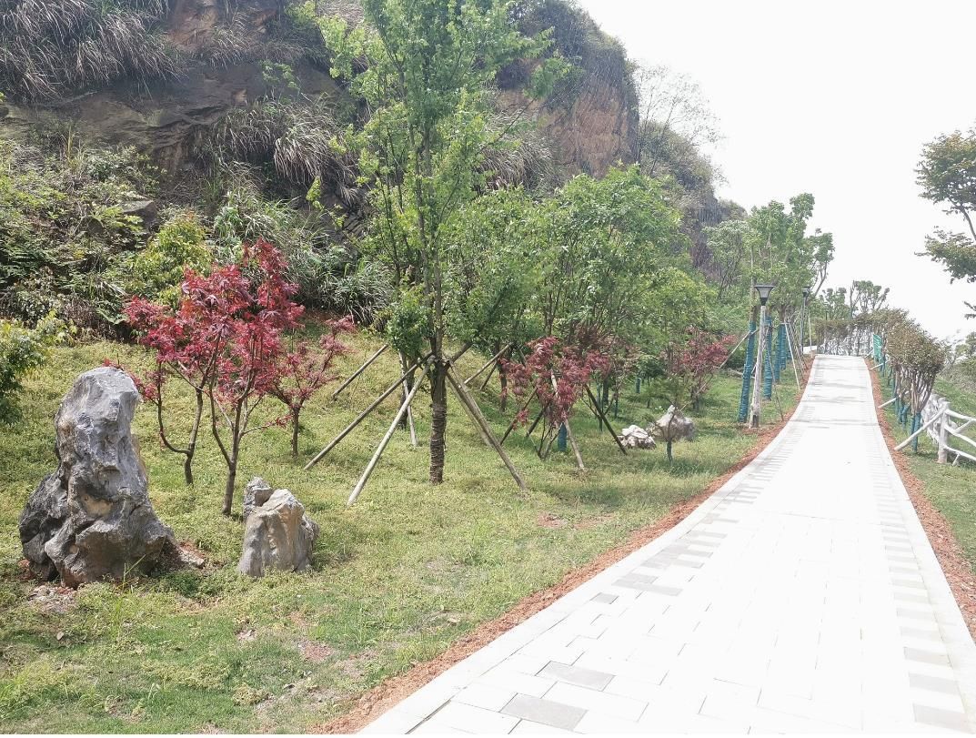 記者漫步生態(tài)公園,成片的月季、百合搖曳生姿,道路兩側的紅葉石楠幼苗綠意盎然,山崖上一排排小櫸樹昂首挺胸……如今,800畝廢棄礦山已完成一半治理,共栽種各種樹木3萬株,種植花草500畝。