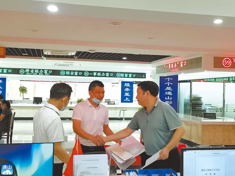 “1個(gè)地塊5個(gè)證,一共25個(gè)證,沒想到一天就能拿到手!”9月30日下午,在通山縣政務(wù)服務(wù)中心工程建設(shè)項(xiàng)目綜合審批窗口,通山縣興達(dá)鞋業(yè)有限公司經(jīng)理程宏兵從縣住建局局長(zhǎng)手中接過(guò)厚厚的一摞證,意味著通山縣興達(dá)鞋業(yè)有限公司在通山的地塊達(dá)到開工條件。