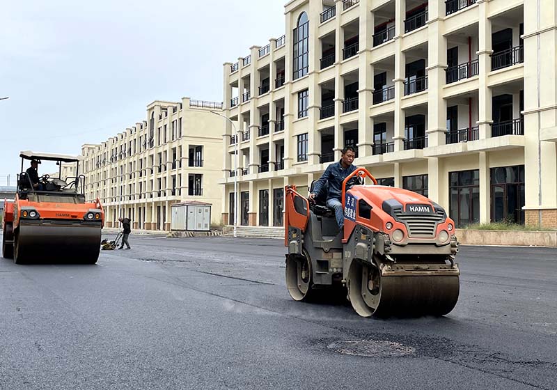 10月18日,浮山街道浮山社區(qū)黨群服務(wù)中心附近的路面刷黑施工現(xiàn)場(chǎng),瀝青攤鋪機(jī)和壓路機(jī)來(lái)回穿梭。隨著施工的推進(jìn),一條寬闊平坦的瀝青路面呈現(xiàn)在眼前。