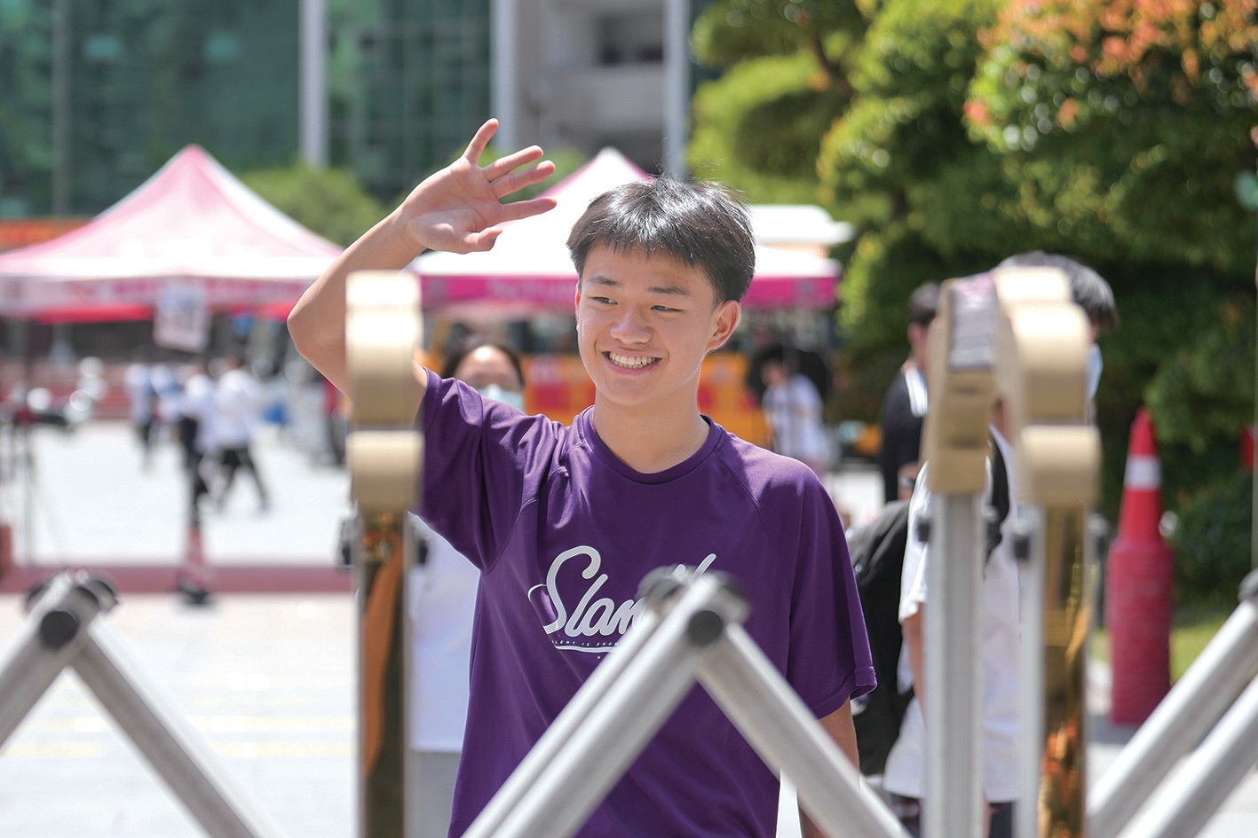 考點(diǎn)里,學(xué)生們有序排隊(duì)、測(cè)溫、驗(yàn)證,依次進(jìn)入考場(chǎng);考點(diǎn)外,一條警戒線將老師、家長(zhǎng)們隔離在外。盡管天氣炎熱,老師和家長(zhǎng)們還是守在校門(mén)口,滿懷希望的目光始終跟隨著孩子。