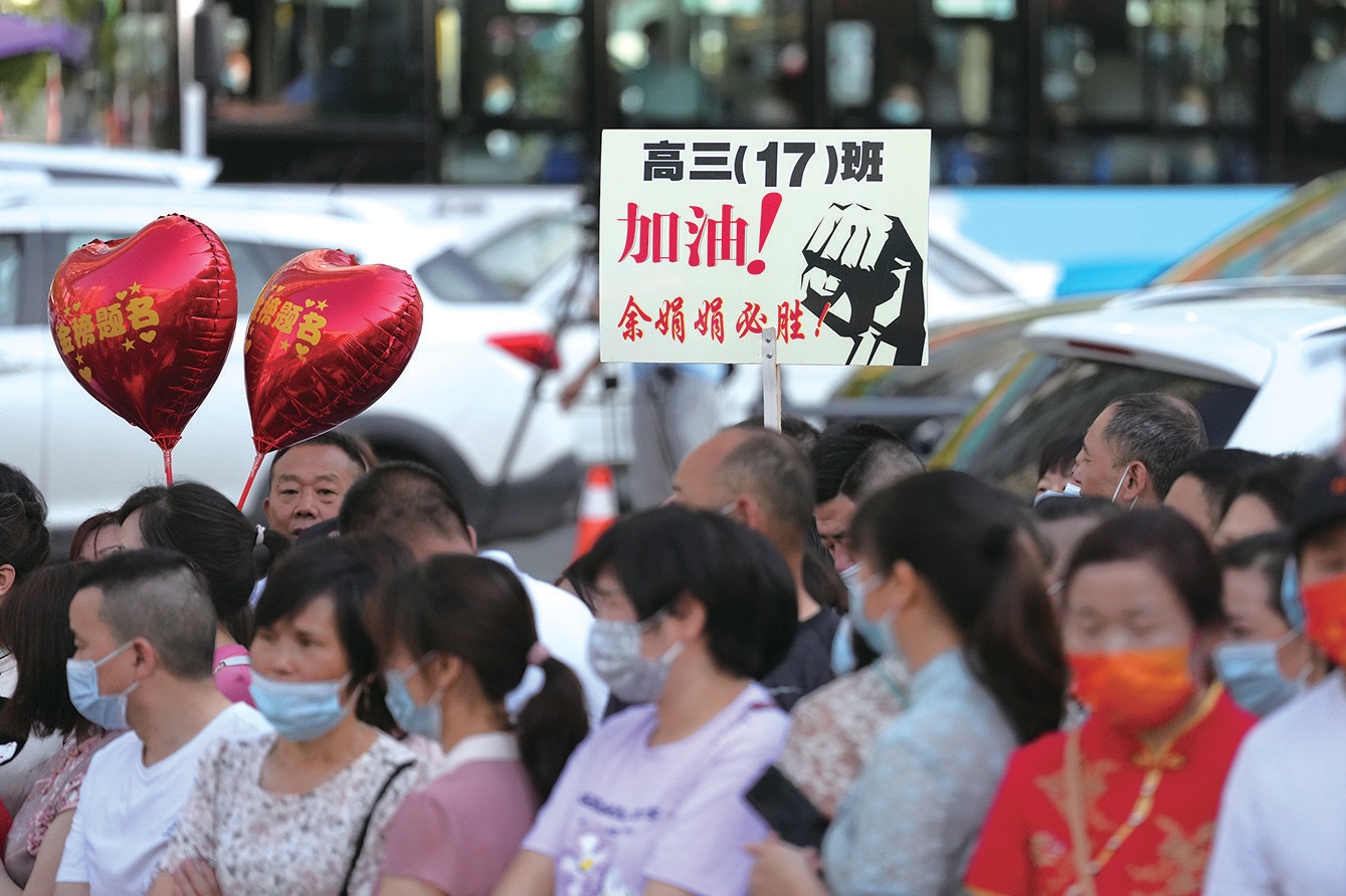 “金榜題名”的紅氣球、“必勝”的標(biāo)語(yǔ)牌、寓意“旗開(kāi)得勝”的旗袍,送考的家長(zhǎng)們把濃濃的愛(ài)、殷切的期望化做各種加油鼓勁。高考,不僅是考生一個(gè)人的事,更是全家人共同的目標(biāo)。