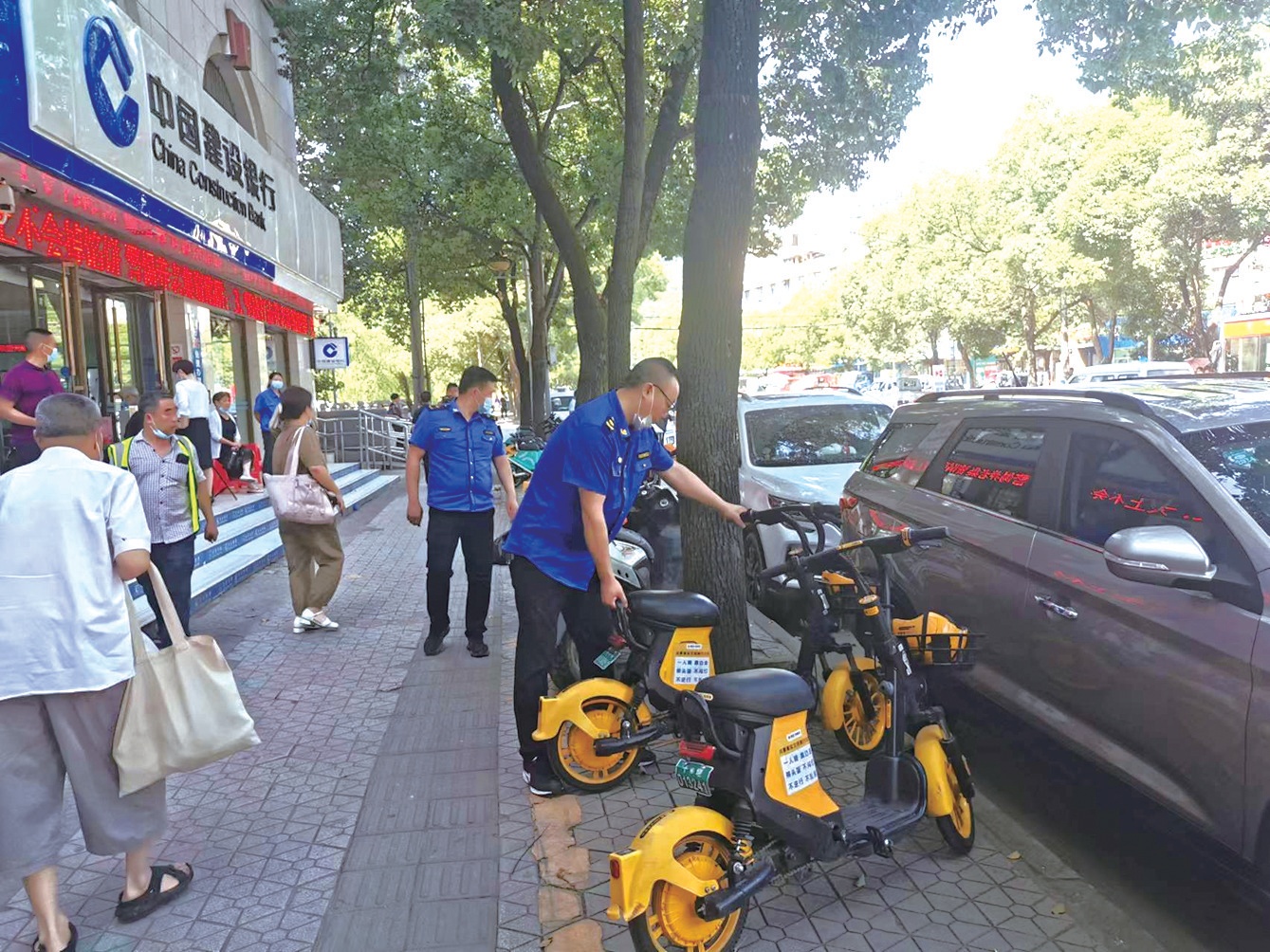 余章偉介紹,共享單車停放問(wèn)題是街辦綜合治理中心關(guān)注的重點(diǎn)內(nèi)容,通過(guò)日常巡查,他們基本上能夠準(zhǔn)確把握常見(jiàn)的亂停亂放點(diǎn)位,有針對(duì)性地重點(diǎn)關(guān)注。一般來(lái)說(shuō),如果發(fā)現(xiàn)少量的亂停車輛,他們會(huì)自己擺放到合適的位置,但亂停車輛較多時(shí),他們就會(huì)拍照發(fā)到“共享單車管理群”,各共享單車企業(yè)的工作人員都在群里,看到消息后,他們會(huì)迅速到現(xiàn)場(chǎng)進(jìn)行整理。