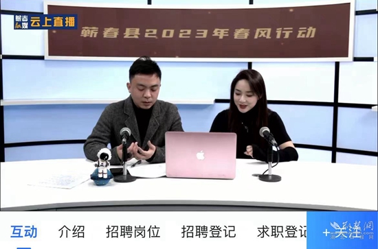 荊楚網(wǎng)(湖北日?qǐng)?bào)網(wǎng))訊(通訊員 呂雷 張聰 陳鈺)“請(qǐng)問(wèn)有沒(méi)有長(zhǎng)白班的工作?”“我們公司里有長(zhǎng)白班,有需求聯(lián)系我!”1月10日,蘄春縣舉辦了主題為“春風(fēng)行動(dòng)惠民生,就業(yè)服務(wù)促發(fā)展”的“直播帶崗”云上招聘會(huì)。