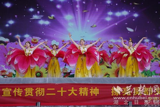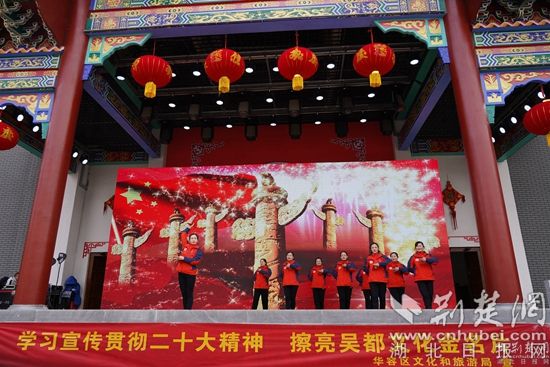 新春廟會(huì)將黨的二十大宣講、文藝演出與民俗表演相結(jié)合,開場舞蹈《荊楚歡歌》、湖北大鼓《二十大精神放光芒》、詩朗誦《航程》、反串《長袖舞》、男聲獨(dú)唱《我和我的祖國》等文藝節(jié)目和傳統(tǒng)的舞獅、雜技、魔術(shù)等老百姓喜聞樂見的表演在廟會(huì)現(xiàn)場輪番上演。