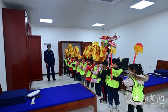 荊楚網(wǎng)(湖北日報網(wǎng))訊(通訊員耿偉鵬)在傳統(tǒng)元宵佳節(jié)即將到來之際,2月3日下午,黃石市西塞山區(qū)藍天銀晶幼兒園師生代表組建的舞龍隊來到了西塞山區(qū)八泉消防站參觀學習,與消防指戰(zhàn)員共度元宵佳節(jié)。