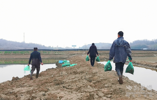 荊楚網(wǎng)(湖北日?qǐng)?bào)網(wǎng))訊(通訊員 李論 李雅琴)春投一簍苗,秋收萬(wàn)斤蟹。2月3日,蘄春縣彭思鎮(zhèn)茅山“觀蟹亭”螃蟹基地呈現(xiàn)一派歡聲笑語(yǔ)的忙碌景象。養(yǎng)殖戶伍師傅一家一大早就等候在向陽(yáng)湖邊,趕著搶抓晴好天氣,給十萬(wàn)尾優(yōu)質(zhì)蟹苗“喜遷”新居。