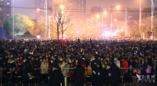 當(dāng)晚,在武山湖南門戶廣場(chǎng)、環(huán)湖大道擠滿了前來觀看的市民游客。大約7時(shí)許,武穴萬人空巷,城東的幾條主干道上,車流滾滾,游人如織。