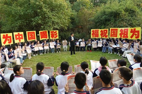 同學(xué)們手舉“踔厲奮發(fā) 砥礪前行”“為中國喝彩 為祖國祝福”等標牌互動熱烈。
