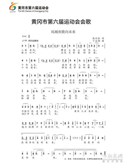 會歌《鳳城歡歌向未來》,由黃岡籍作家陳訓(xùn)金作詞,黃岡師范學(xué)院青年作曲家丁永鋼作曲。作品主題突出,風(fēng)格清新,節(jié)奏明快、旋律優(yōu)美,催人奮進(jìn)。
