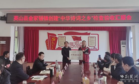 荊楚網(wǎng)(湖北日報(bào)網(wǎng))訊(通訊員葉銘鈞、鄭涵)2月25日上午,省中華詩詞協(xié)會會長段維一行赴英山縣金家鋪鎮(zhèn)檢查驗(yàn)收湖北省“中華詩詞之鄉(xiāng)”創(chuàng)建工作,現(xiàn)場授予金家鋪鎮(zhèn)“中華詩詞之鄉(xiāng)”,龍?zhí)逗哟濉堉榇?、楊家河村“中華詩詞之村”,金鋪中心小學(xué)“中華詩教先進(jìn)單位”稱號。