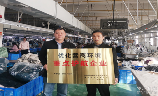 此前,英山縣紀(jì)委監(jiān)委“護(hù)航”行動(dòng)專班在對(duì)全縣重點(diǎn)企業(yè)進(jìn)行走訪時(shí),湖北如普帽業(yè)有限公司反映該公司門口的“優(yōu)化營(yíng)商環(huán)境重點(diǎn)護(hù)航企業(yè)”牌匾是2020年5月懸掛的,因常年風(fēng)吹日曬,導(dǎo)致字跡斑駁不清。隨后,該縣紀(jì)委監(jiān)委將這一問(wèn)題納入工作臺(tái)賬,立即協(xié)調(diào)重新制作牌匾,于是便有了開(kāi)頭“換牌”的一幕,這也是該委深化“護(hù)航行動(dòng)”的一個(gè)生動(dòng)體現(xiàn)。
