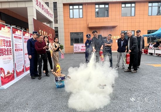 在活動現(xiàn)場,伴隨著一陣陣掌聲,舞蹈、紅歌合唱、互動游戲等節(jié)目精彩紛呈,譜寫了一曲曲軍民團(tuán)結(jié)、共建和諧的動人樂章,為社區(qū)居民呈現(xiàn)了視聽盛宴,叫好聲此起彼伏。借此契機,消防人員結(jié)合真實案例講解,生動形象地向在座的居民講述了防火技能、火災(zāi)防護(hù)和滅火方法等知識。手把手地教授居民群眾如何正確使用滅火器,并鼓勵大家親身體驗使用手提式干粉滅火器,撲滅“火情”。居民踴躍參與,直呼這場培訓(xùn)太有用。