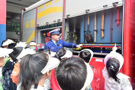 在百花路消防救援站營區(qū),小畫家們在消防員的帶領(lǐng)下參觀了消防車輛、器材裝備。消防員耐心地為小畫家們講解了消防安全知識,詳細介紹了各個消防車輛裝備的名稱、用途以及在滅火救援戰(zhàn)斗中發(fā)揮的重要作用。