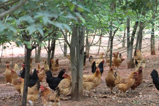 走在梓沐家庭農(nóng)場(chǎng)里,綠樹(shù)成蔭,微風(fēng)習(xí)習(xí)?!斑@是茶梅路,那邊一條是桂花路,中間種的是三角楓,桂花路另一邊是樸樹(shù)以及一些果樹(shù)?!蓖踔窃竭呑哌吔榻B,農(nóng)場(chǎng)充分利用空間發(fā)展林下經(jīng)濟(jì),單獨(dú)劃分區(qū)域,在樹(shù)下放養(yǎng)雞鴨共計(jì)1000余只。