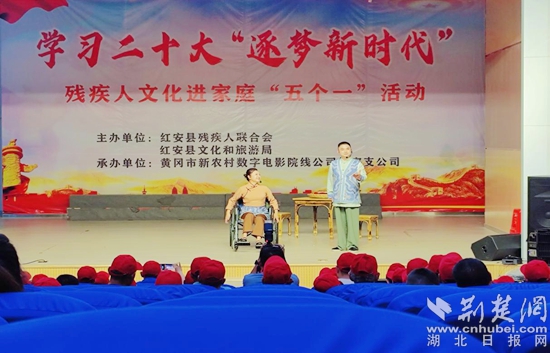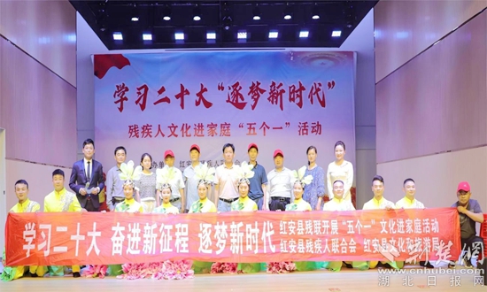 荊楚網(wǎng)(湖北日報網(wǎng))訊(通訊員程應(yīng)良)5月21日,紅安縣殘疾人聯(lián)合會、紅安縣文化和旅游局聯(lián)合舉辦“學(xué)習(xí)二十大 逐夢新時代”為主題的第二期殘疾人文化進(jìn)家庭“五個一”活動,幫助殘疾人朋友游一次園、參觀一次展覽、讀一本書、參加一次文化活動、看一場電影。