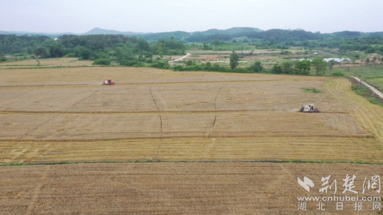 荊楚網(wǎng)(湖北日報網(wǎng))訊(通訊員王煥鑫 余常家)麥浪滾滾,機器轟鳴。近日,在永佳河鎮(zhèn)尾斗山村的田間地頭,市場主體、種糧大戶們忙著組織農(nóng)機收割小麥,呈現(xiàn)出一派繁忙的豐收景象。