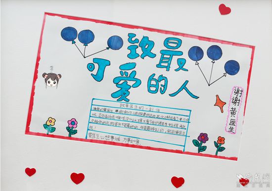 “這幅畫送給黃醫(yī)生。”小明因為支氣管炎接受了一周的住院治療,他在兒科病房內(nèi)用顏料、紙張和畫筆,畫了自己和兒科主任黃佳林主任的合照,準備在出院時送給醫(yī)生。